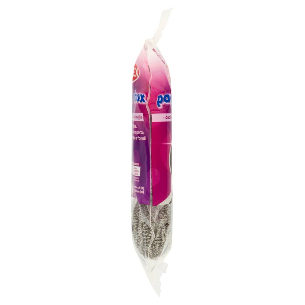 Con filo in acciaio inossidabile. Non arrugginiscono. Rimuovono lo sporco ostinato da pentole, stoviglie, griglie e fornelli senza graffiarli.