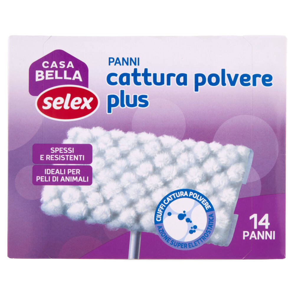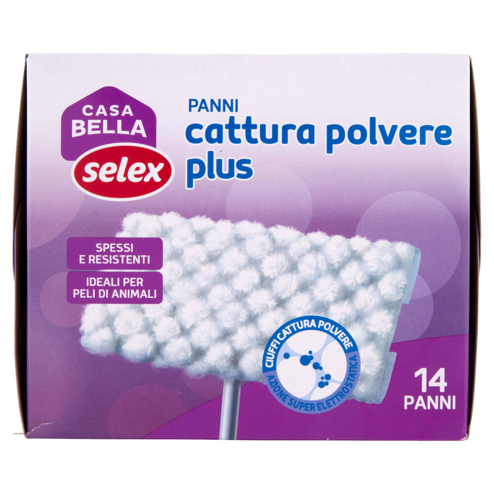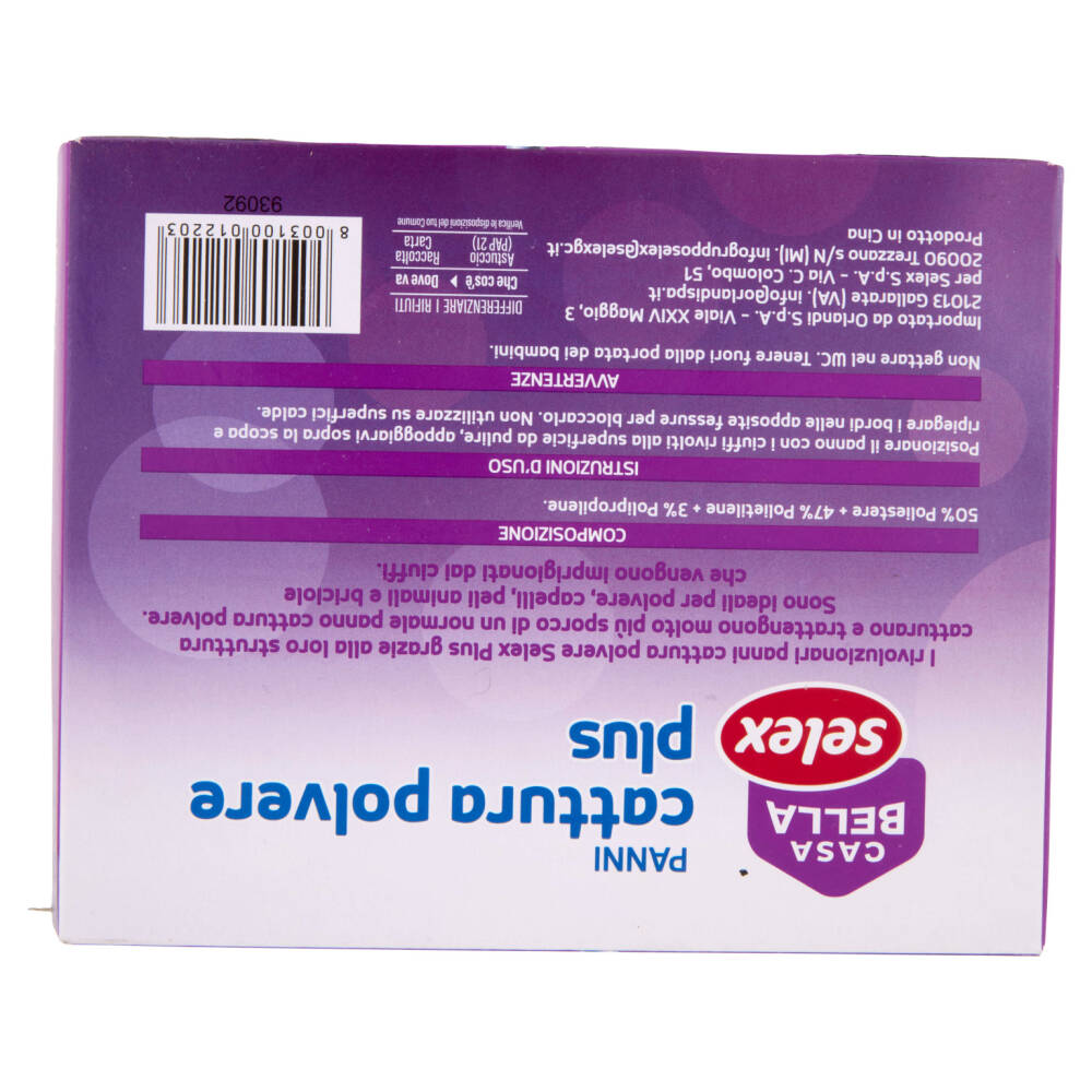 I rivoluzionari panni cattura polvere Selex Plus grazie alla loro struttura catturano e trattengono molto più sporco di un normale panno cattura polvere. Sono ideali per polvere, capelli, peli animali e briciole che vengono imprigionati dai ciuffi.