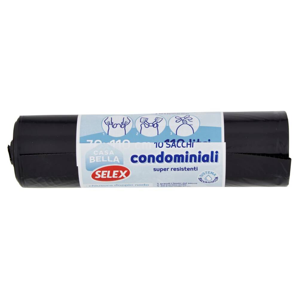 Selex Casa Bella Sacchi Condominiali Nero Chiusura Doppio Nodo Cm 70X110 10 pezzi