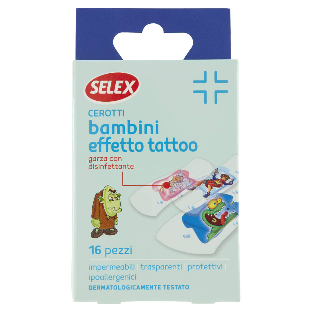 Il cerotto trasparente con "effetto tattoo" aiuta i bambini a dimenticare in fretta le piccole ferite. La compressa di garza antisettica con clorexidina digluconato aiuta a prevenire e combattere le infezioni, controllando il microambiente della ferita.