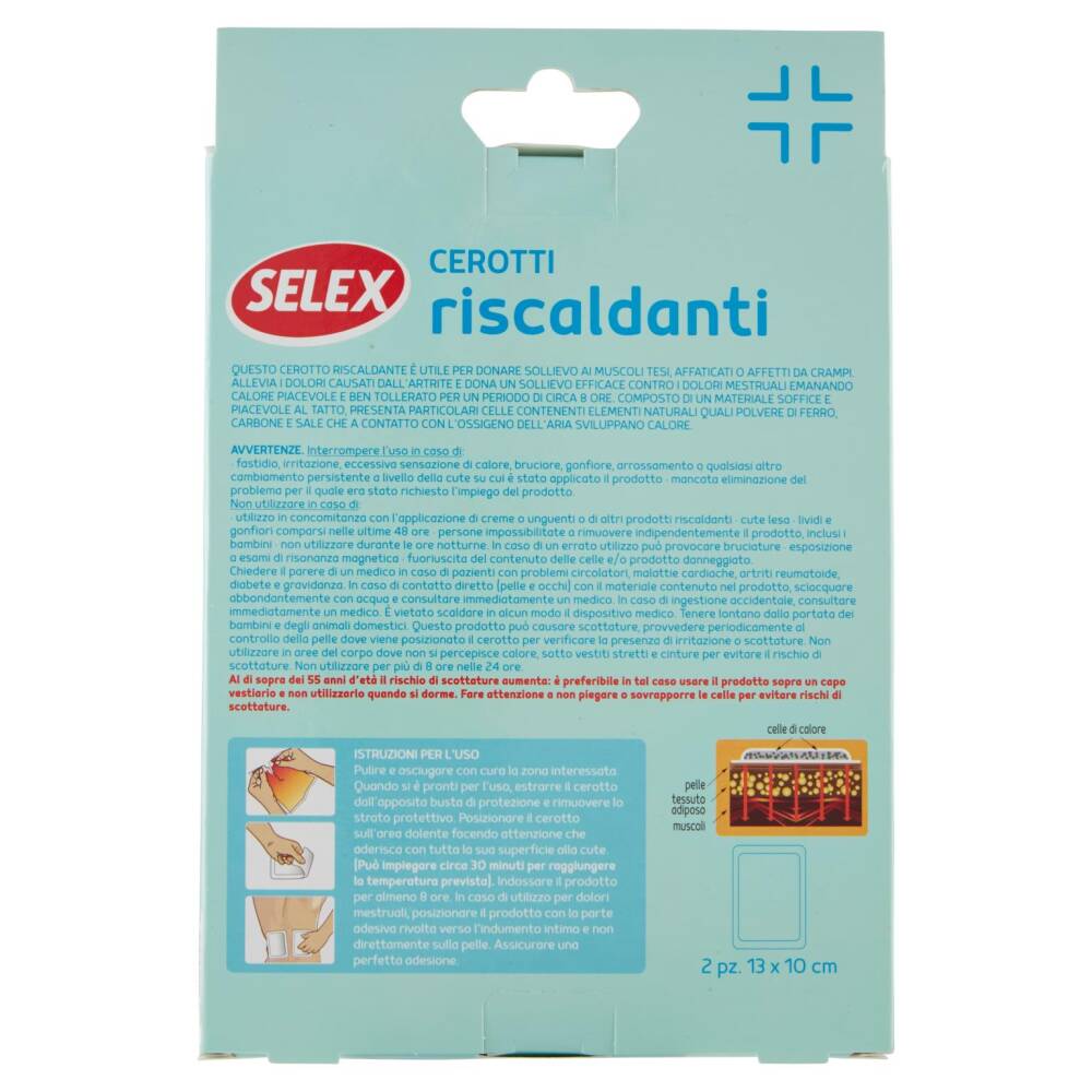Questo cerotto riscaldante è utile per donare sollievo ai muscoli tesi, affaticati o affetti da crampi. Allevia i dolori causati dall'artrite e dona un sollievo efficace contro i dolori mestruali emanando calore piacevole e ben tollerato per un periodo di circa 8 ore. Composto di un materiale soffice e piacevole al tatto, presenta particolari celle contenenti elementi naturali quali polvere di ferro, carbone e sale che a contatto con l'ossigeno dell'aria sviluppano calore.