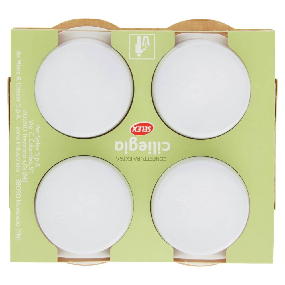 Ciliegie Sciroppo di glucosio-fruttosio Zucchero Gelificante: pectina Correttore di acidità: acido citrico Senza glutine Frutta utilizzata: 45 g per 100 g Può contenere frammenti di noccioli di frutta