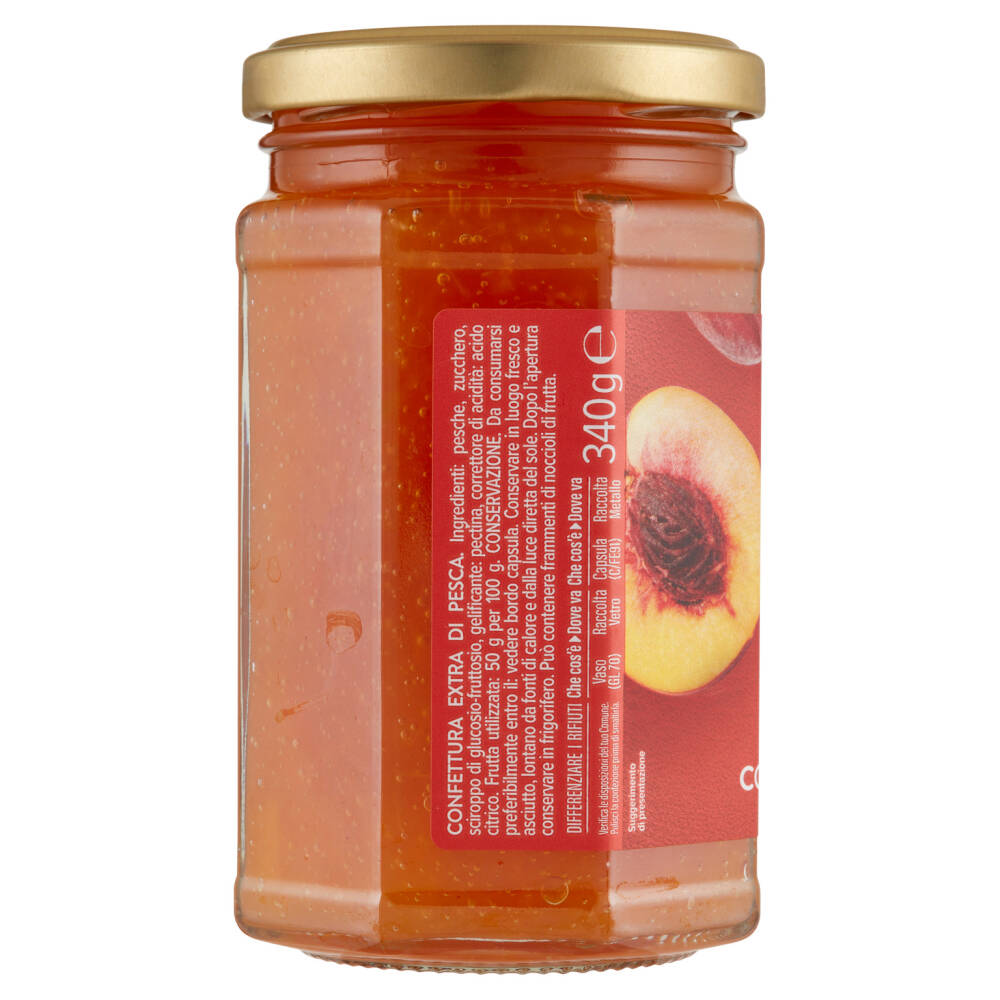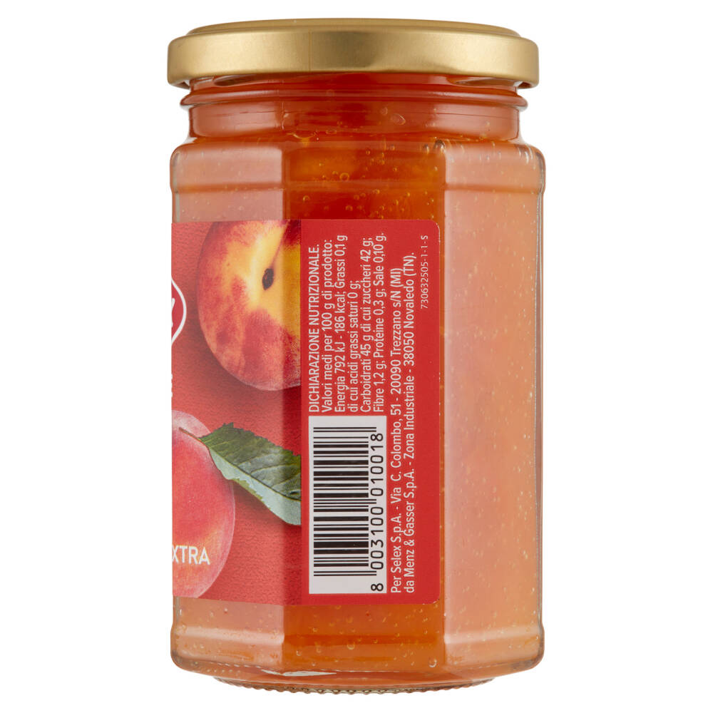 Pesche Zucchero Sciroppo di glucosio-fruttosio Gelificante: pectina Correttore di acidità: acido citrico Frutta utilizzata: 50 g per 100 g