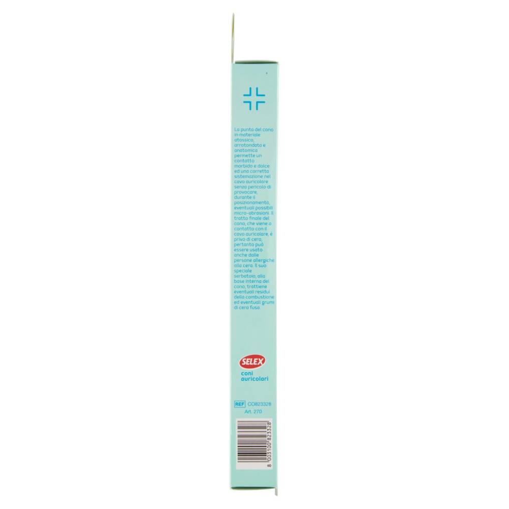 La punta del cono in materiale atossico, arrotondata e anatomica permette un contatto morbido e dolce ed una corretta sistemazione nel cavo auricolare senza pericolo di provocare, durante il posizionamento, eventuali possibili micro-abrasioni. Il tratto finale del cono, che viene a contatto con il cavo auricolare, è privo di cera, pertanto può essere usato anche dalle persone allergiche alla cera. Il suo speciale serbatoio, alla base interna del cono, trattiene eventuali residui della combustione ed eventuali grumi di cera fusa.