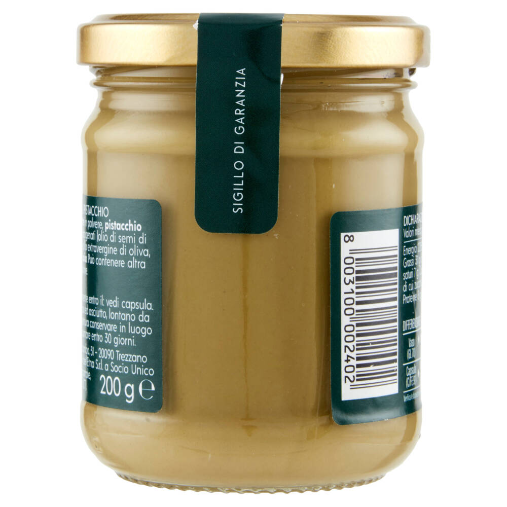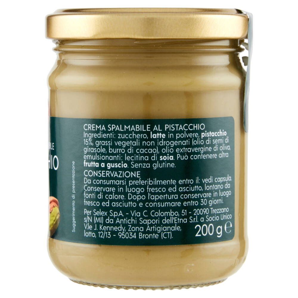 Zucchero Latte in polvere Pistacchio 15% Grassi vegetali non idrogenati (olio di semi di girasole, burro di cacao) Olio extravergine di oliva Emulsionanti: lecitina di soia Può contenere altra frutta a guscio Senza glutine