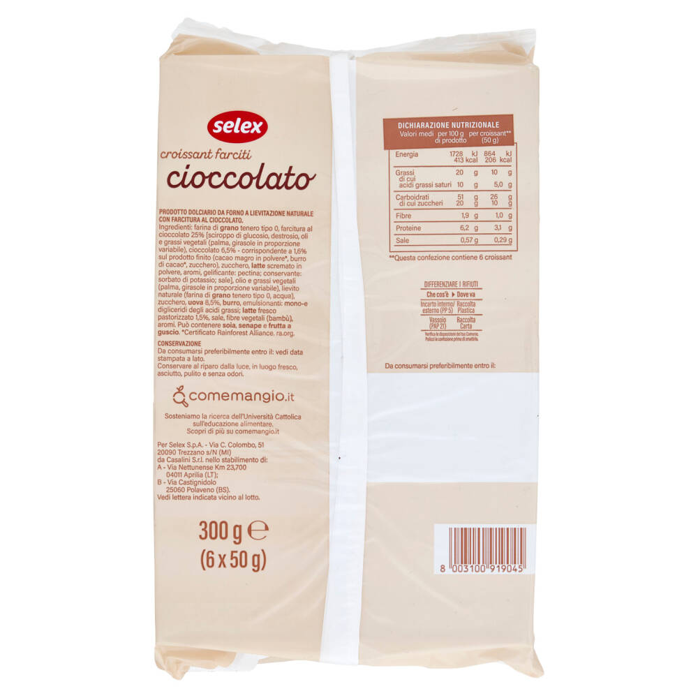Farcitura al cioccolato 25% [sciroppo di glucosio, destrosio, oli e grassi vegetali (palma, girasole in proporzione variabile), cioccolato 6,5% - corrispondente a 1,6% sul prodotto finito (cacao magro in polvere *, burro di cacao *, zucchero), zucchero, latte scremato in polvere, aromi, gelificante: pectina; conservante: sorbato di potassio; sale]