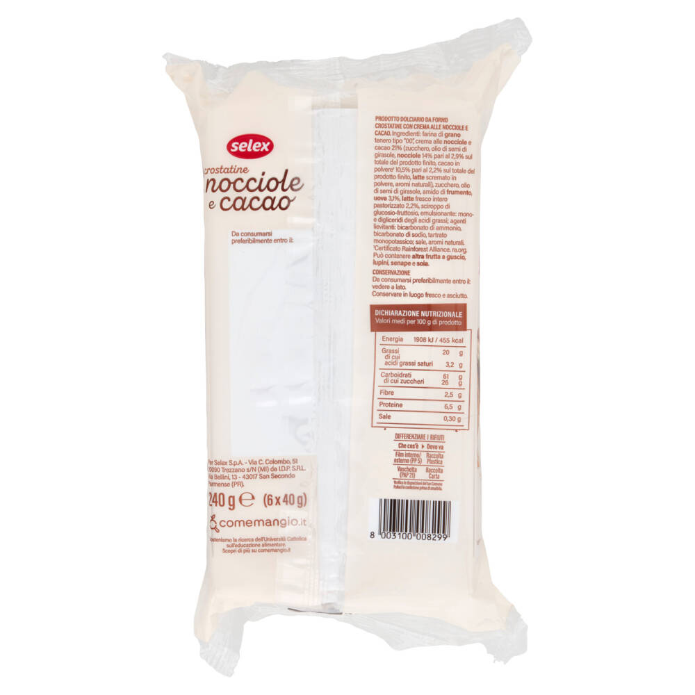 Crema alle nocciole e cacao 21% (zucchero, olio di semi di girasole, nocciole 14% pari al 2,9% sul totale del prodotto finito, cacao in polvere¹ 10,5% pari al 2,2% sul totale del prodotto finito, latte scremato in polvere, aromi naturali)