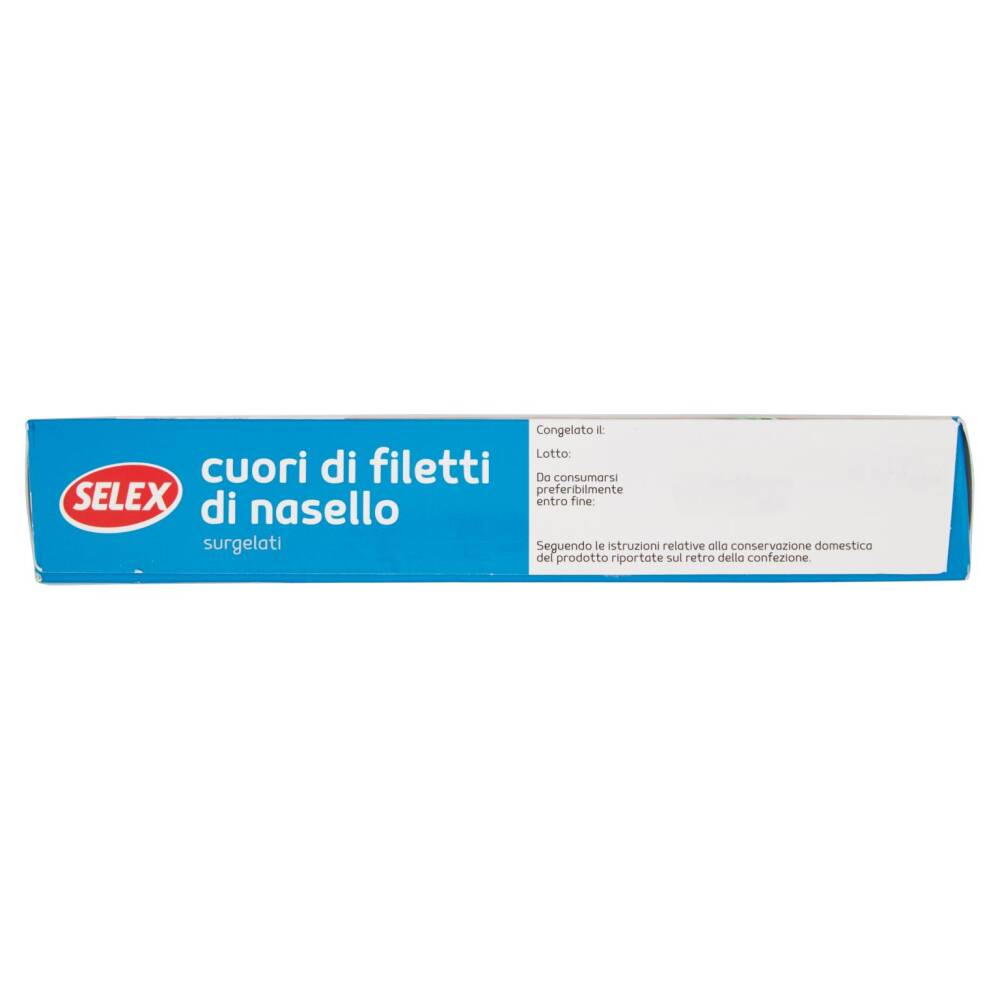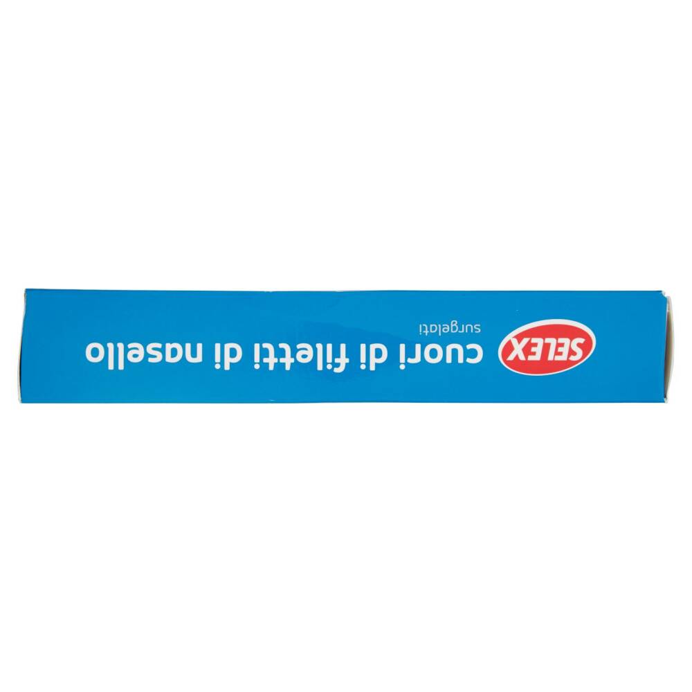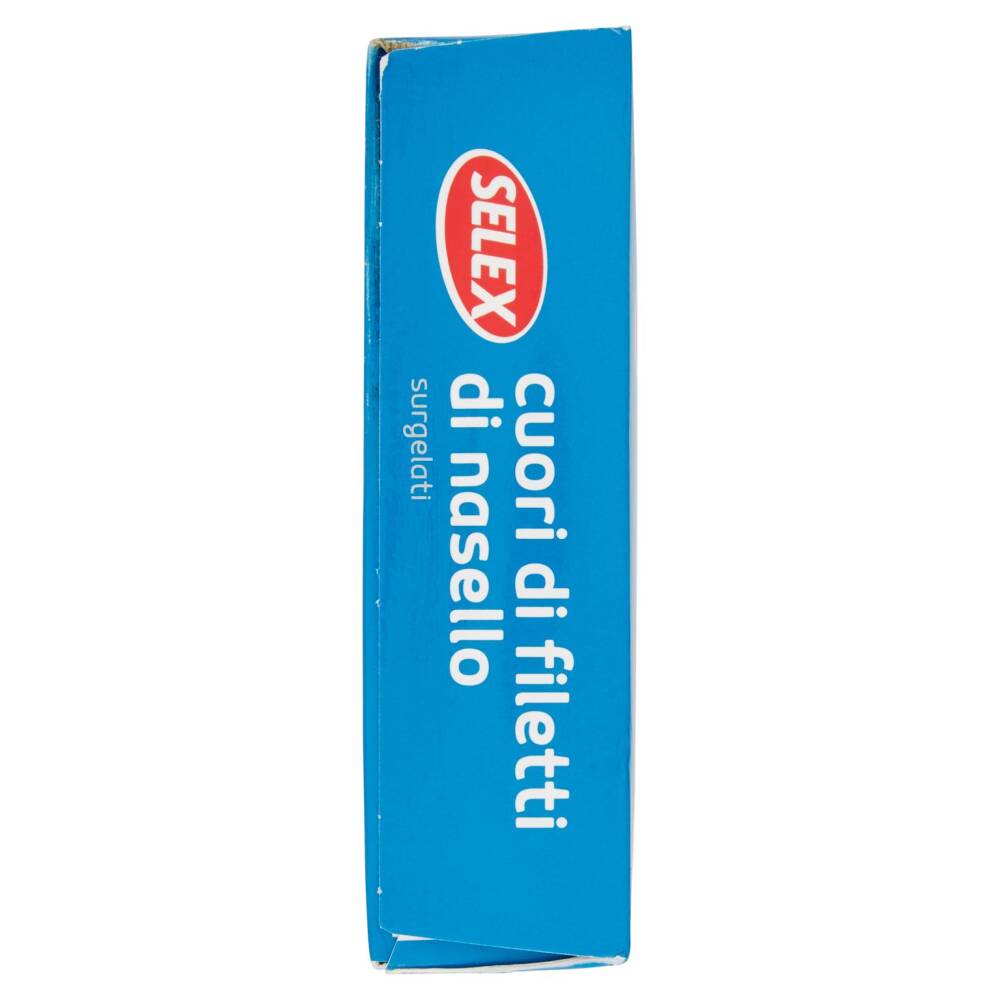 Cuori di filetti di nasello surgelati. Costituito da parti di pesce
