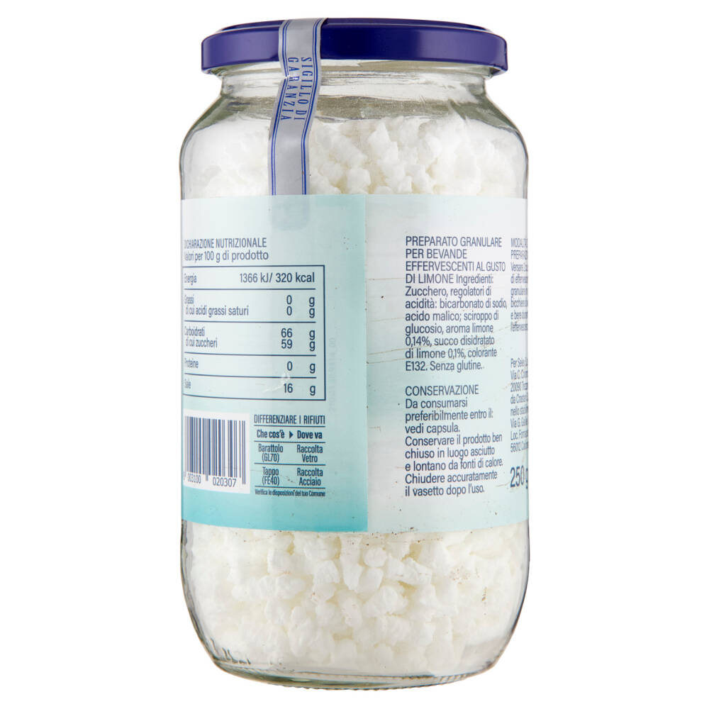 Zucchero Regolatori di acidità: bicarbonato di sodio, acido malico Sciroppo di glucosio Aroma limone 0,14% Succo disidratato di limone 0,1% Colorante E132 Senza glutine