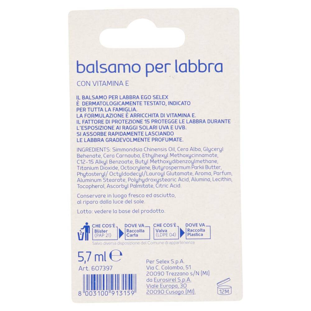 Il balsamo per labbra Ego Selex è dermatologicamente testato, indicato per tutta la famiglia.