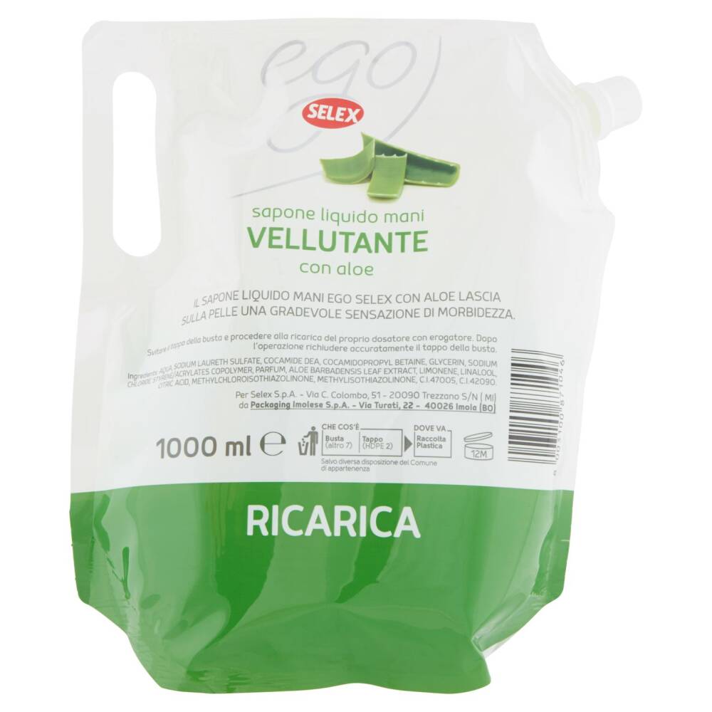 Il sapone liquido mani Ego Selex con aloe lascia sulla pelle una gradevole sensazione di morbidezza.