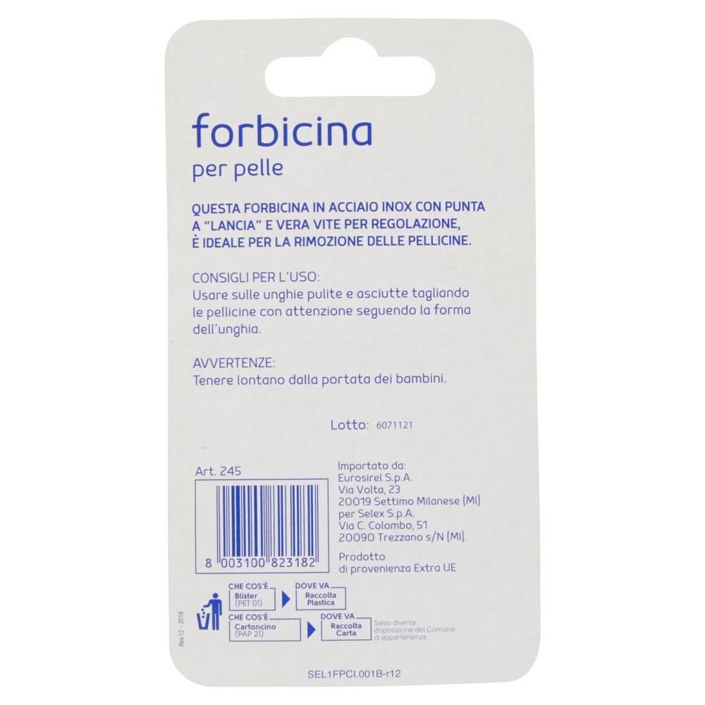 Questa forbicina in acciaio inox con punta a "lancia" e vera vite per regolazione, è ideale per la rimozione delle pellicine.