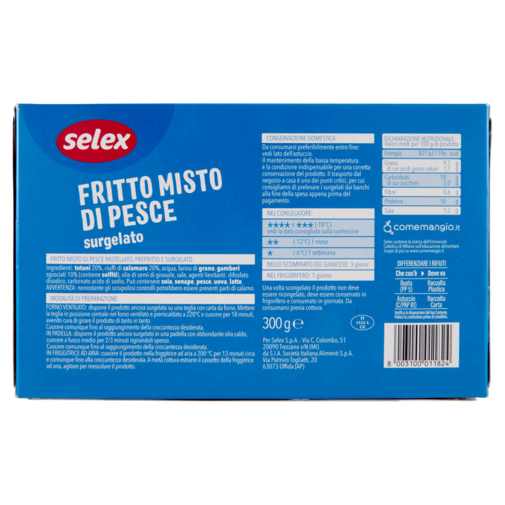 Fritto misto di pesce pastellato, prefritto e surgelato