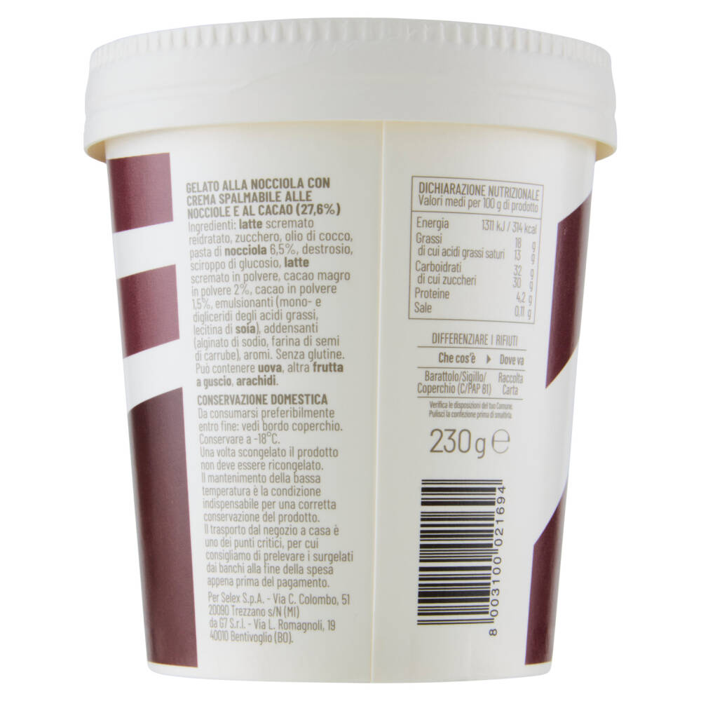 Gelato alla nocciola con crema spalmabile alle nocciole e al cacao (27,6%)