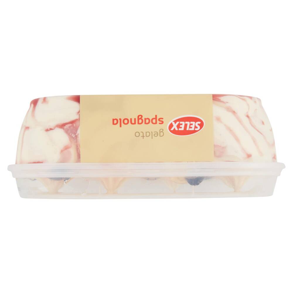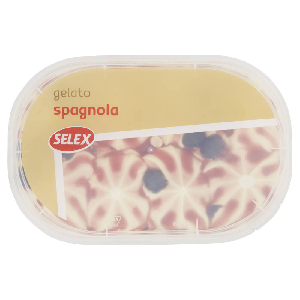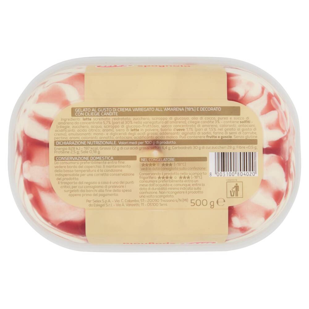Gelato al gusto di crema variegato all'amarena (18%) e decorato con ciliegie candite