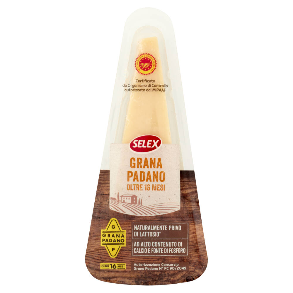 Denominazione d'Origine Protetta Naturalmente privo di lattosio* Ad alto contenuto di calcio e fonte di fosforo *Naturalmente privo di lattosio per naturale processo di produzione - lattosio inferiore a 1mg/100g - contiene galattosio in quantità inferiori a 10mg/100g