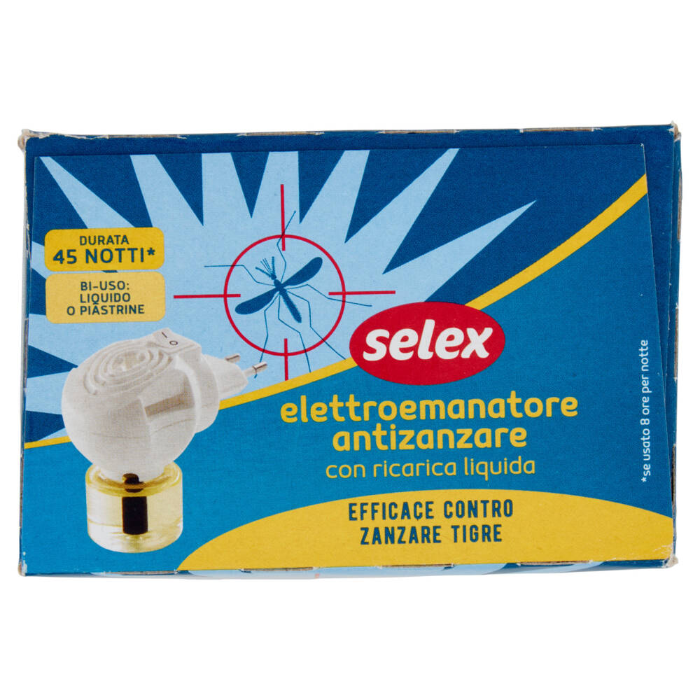 Durata 45 notti* Bi-uso: liquido o piastrine Elettroemanatore antizanzare con ricarica liquida Efficace contro zanzare tigre *se usato 6-8 ore per notte