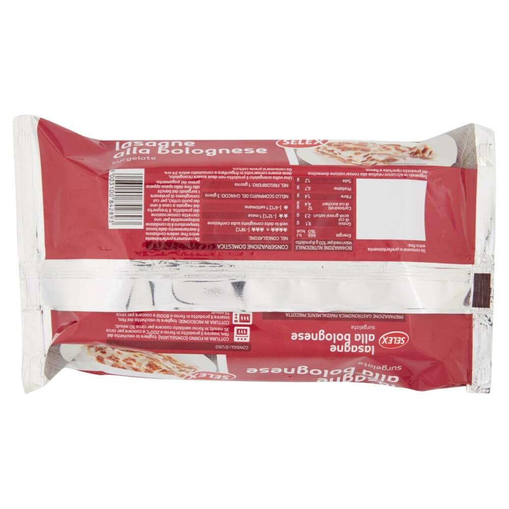 Preparazione gastronomica parzialmente precotta e surgelata a base di pasta all'uovo (21%) condita con besciamella e ragù di carne