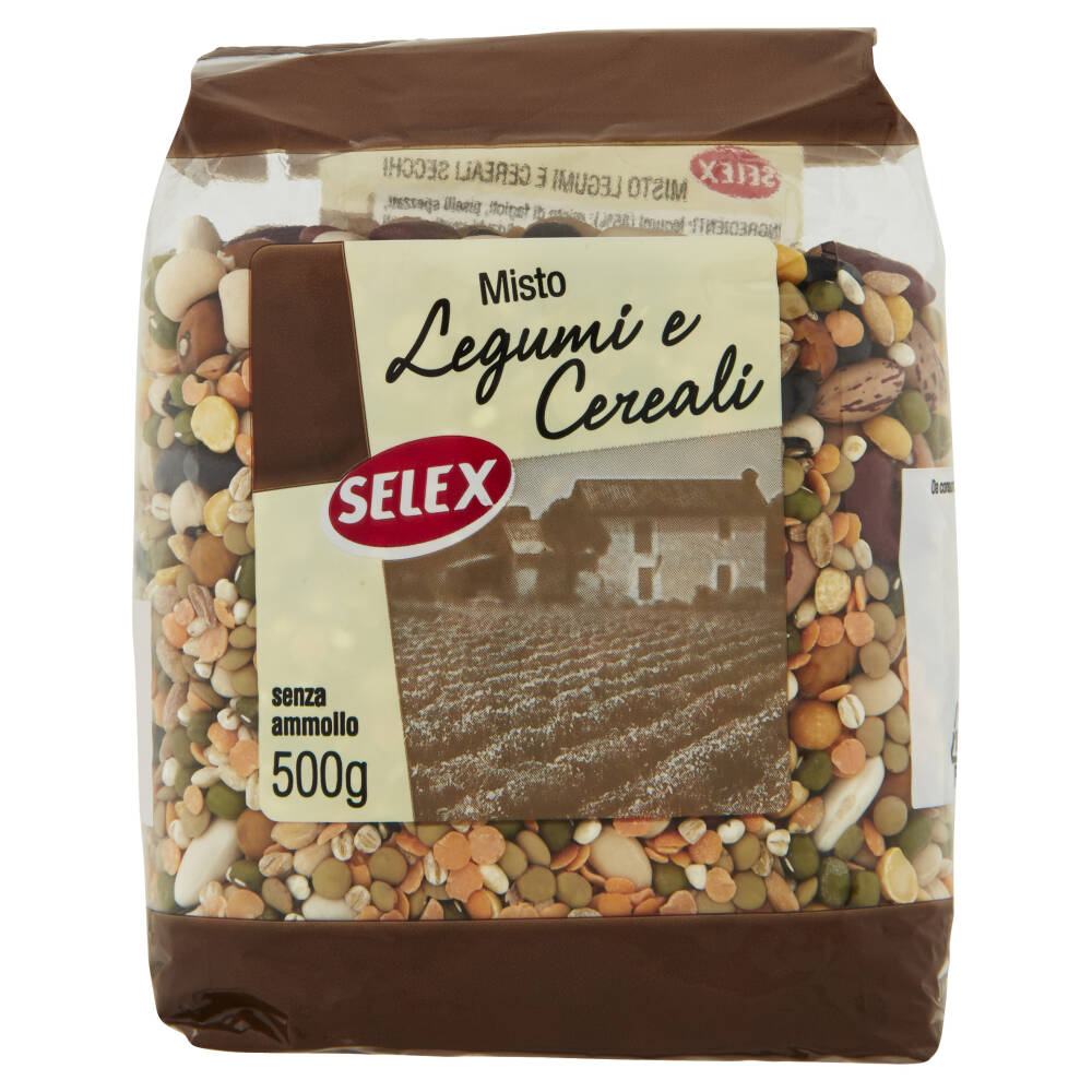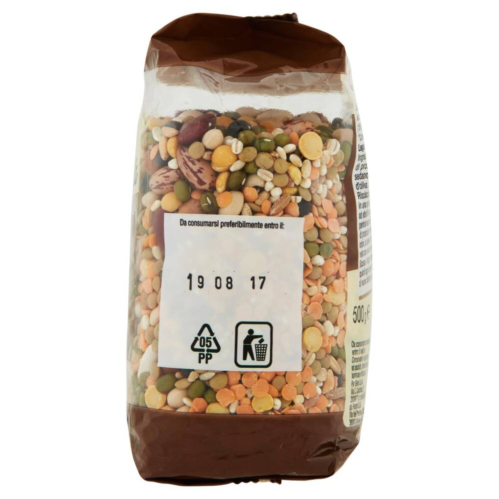 Ingredienti: 200g di Misto di Legumi e Cereali, 40g di grasso di prosciutto o lardo, 200g di pomodori pelati, 1 gambo di sedano, 1 carota, 1/2 cipolla, 4 cucchiai d'olio extra vergine d'oliva, 2 bicchieri di brodo o di acqua, sale, pepe.