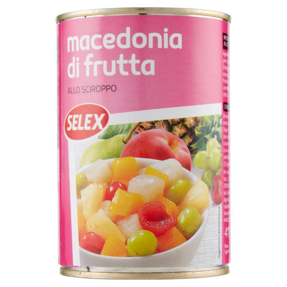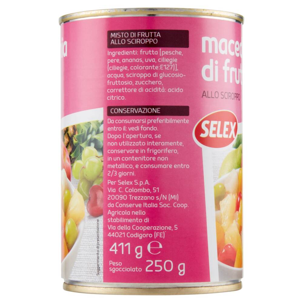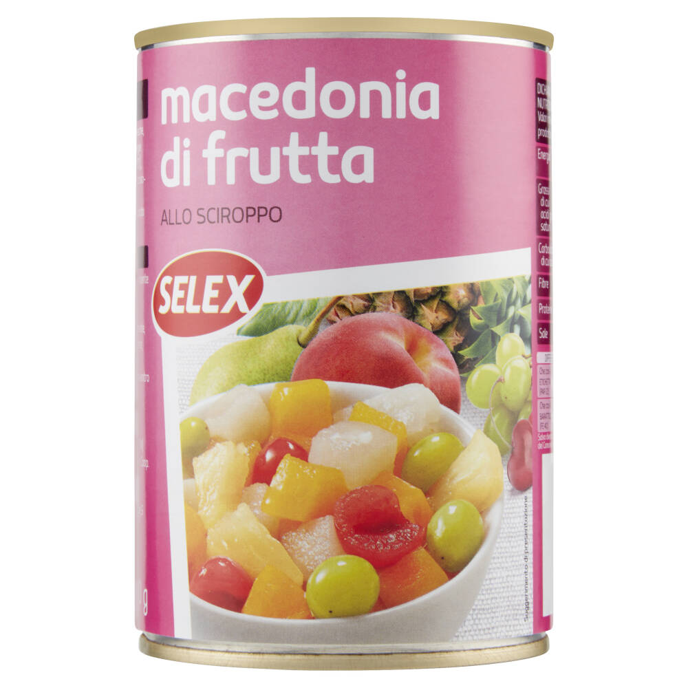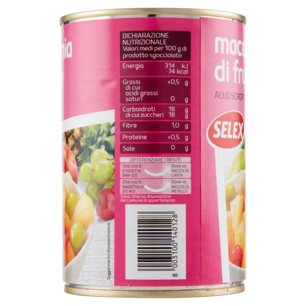 Frutta [pesche, pere, ananas, uva, ciliegie (ciliegie, colorante: E127)] Acqua Sciroppo di glucosio-fruttosio Zucchero Correttore di acidità: acido citrico