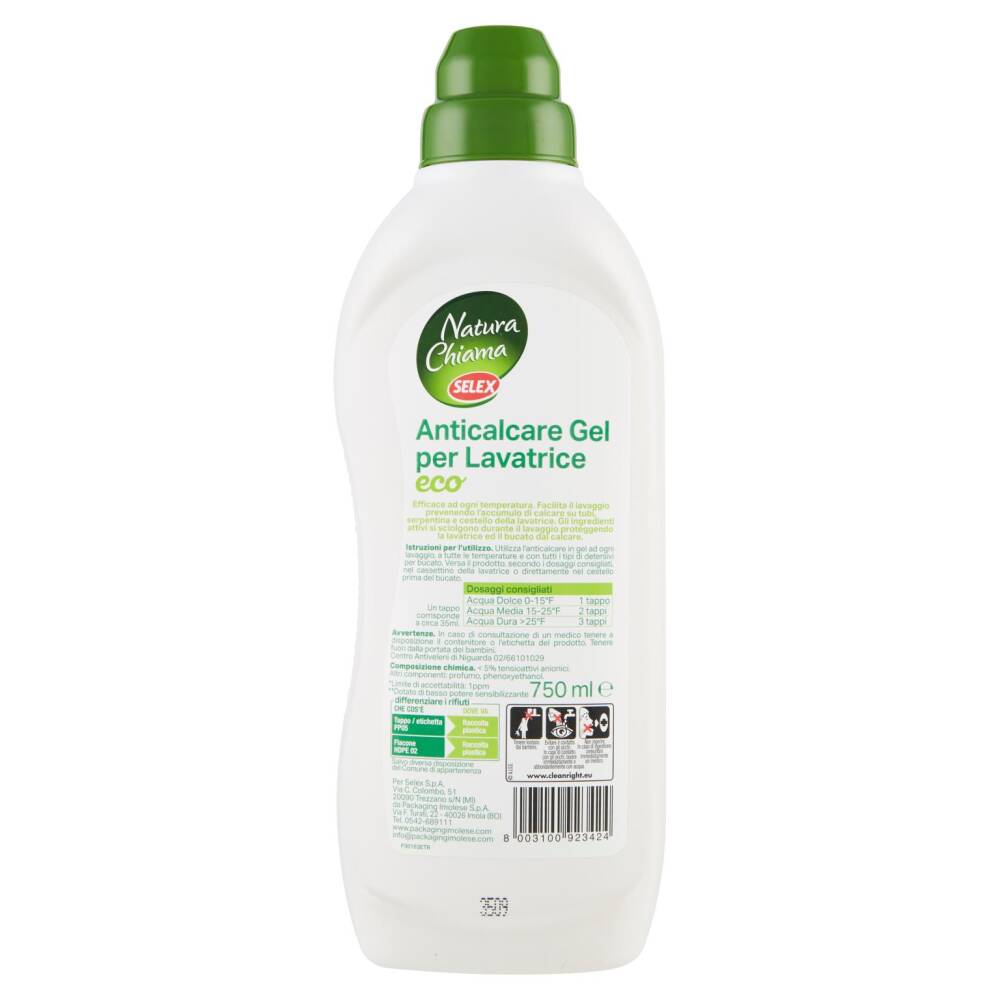 Istruzioni per l'utilizzo. Utilizza l'anticalcare in gel ad ogni lavaggio, a tutte le temperature e con tutti i tipi di detersivi per bucato. Versa il prodotto, secondo i dosaggi consigliati, nel cassettino della lavatrice o direttamente nel castello prima del bucato.