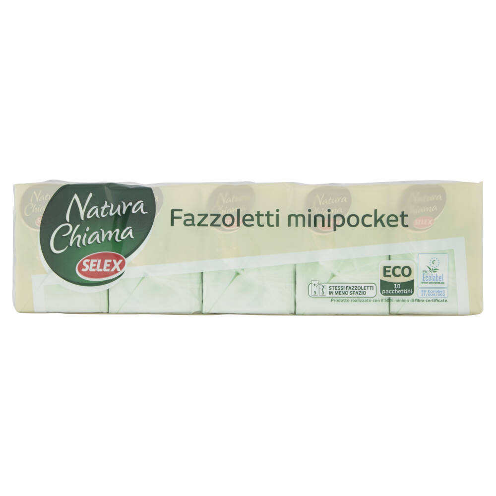 Il Fazzoletto Minipocket Ecolabel è un prodotto in pura cellulosa che unisce morbidezza e resistenza ad una particolare attenzione per l'ambiente. È infatti realizzato secondo un processo produttivo ed una composizione che rispettano i criteri previsti dalla Certificazione Ecolabel. Grazie al particolare sistema di piega è possibile usufruire dei pratici pacchettini compatti mantenendo la stessa quantità di fazzoletti presenti in un prodotto standard (9 fazzoletti 4 veli).