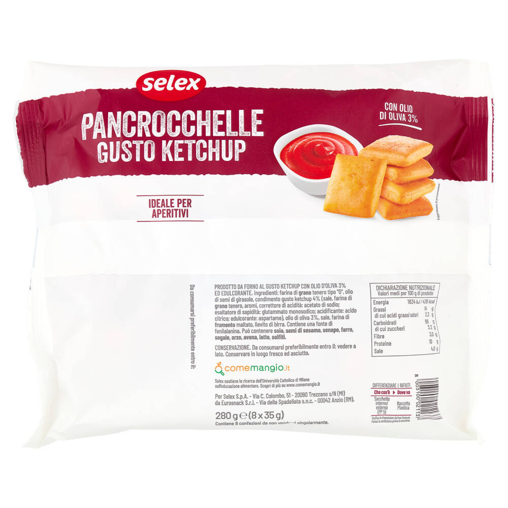 Condimento gusto ketchup 4% (sale, farina di grano tenero, aromi, correttore di acidità: acetato di sodio; esaltatore di sapidità: glutammato monosodico; acidificante: acido citrico; edulcorante: aspartame)