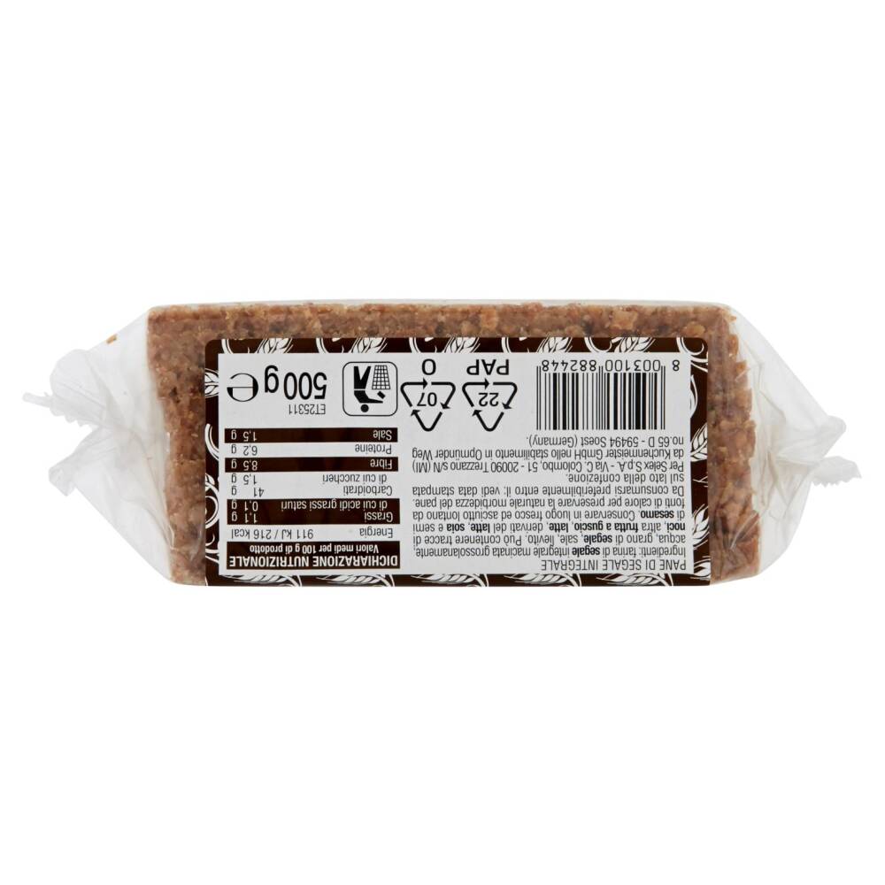 Farina di segale integrale macinata grossolanamente Acqua Grano di segale Sale Lievito Può contenere tracce di noci, altra frutta a guscio, latte, derivati del latte, soia e semi di sesamo
