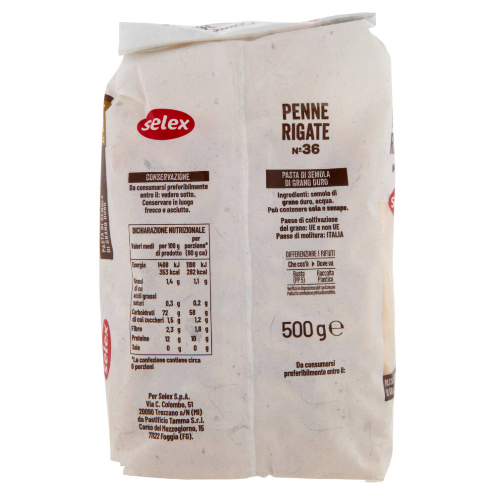 Selex Pasta di Semola Trafilata al Bronzo Penne Rigate 500 g