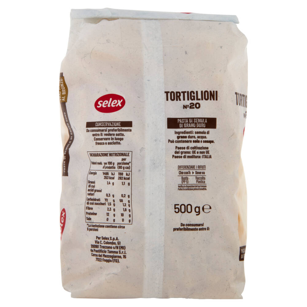 Selex Pasta di Semola Trafilata al Bronzo Tortiglioni 500 g