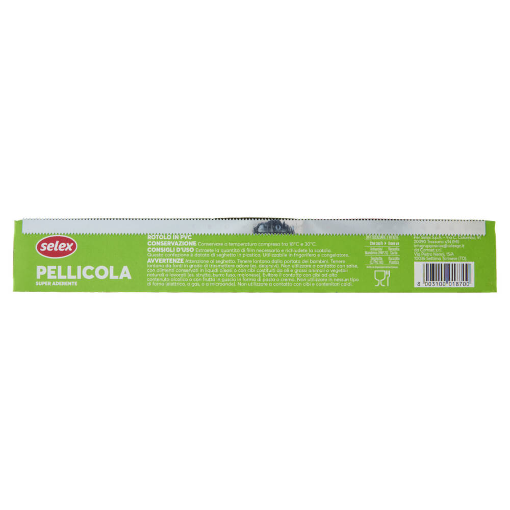 Estraete la quantità di film necessario e richiudete la scatola. Questa confezione è dotata di seghetto in plastica. Utilizzabile in frigorifero e congelatore.