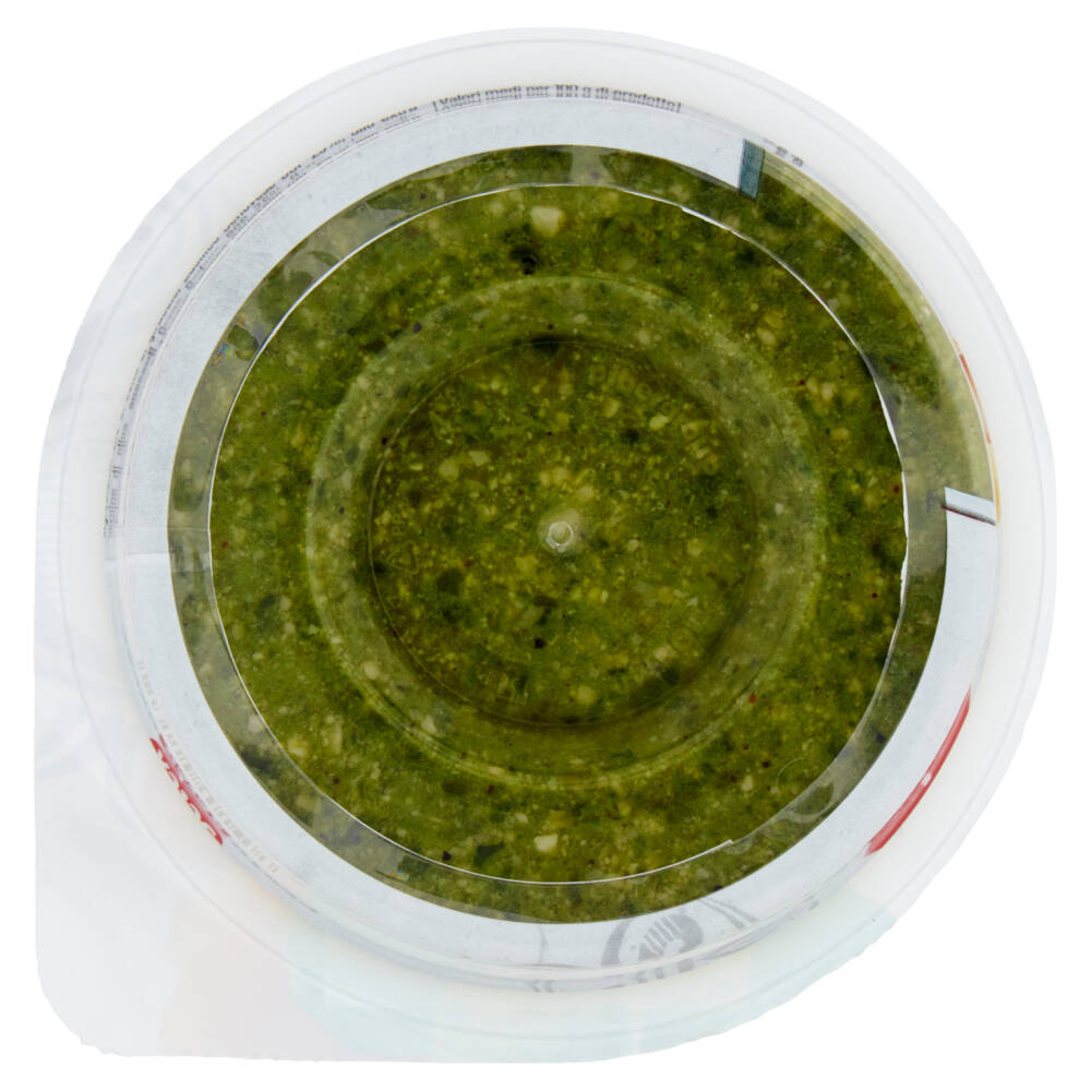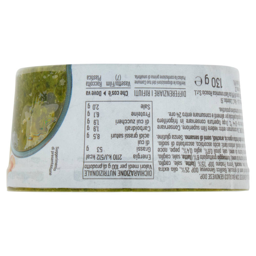 Olio di semi di girasole Basilico Genovese DOP 25% Olio extra vergine di oliva Anacardi Grana Padano DOP 75% (latte, sale, caglio, conservante: lisozima da uovo) Formaggio grattugiato 6% (latte, sale, caglio, conservante: lisozima da uovo) Sale Pinoli 0,6% Aglio 0,4% Pepe Noce moscata Aromi naturali Antiossidanti: acido ascorbico, ascorbato di sodio Può contenere altra frutta a guscio, arachidi, semi di sesamo Senza glutine