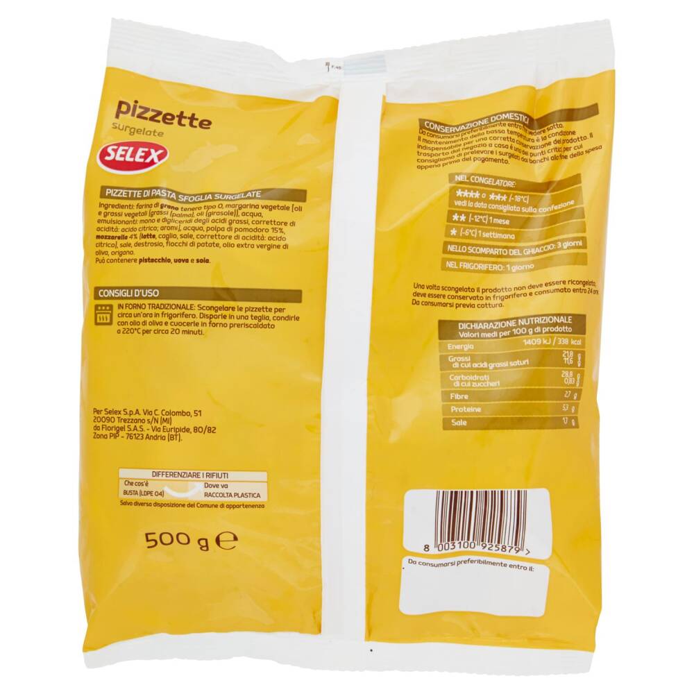 Farina di grano tenero tipo 0 Margarina vegetale [oli e grassi vegetali (grassi (palma), oli (girasole)), acqua, emulsionanti: mono e digliceridi degli acidi grassi, correttore di acidità: acido citrico; aromi] Acqua Polpa di pomodoro 15% Mozzarella 4% (latte, caglio, sale, correttore di acidità: acido citrico) Sale Destrosio Fiocchi di patate Olio extra vergine di oliva Origano Può contenere pistacchio, uova e soia