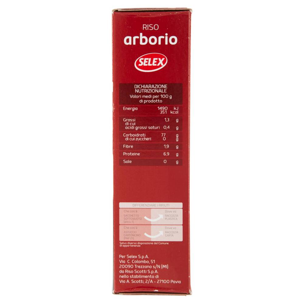 Il riso Arborio si presenta con chicchi grossi e un notevole contenuto di amido, assorbe ottimamente sughi per piatti elaborati. Ideale per risotti. L'Arborio è il riso più conosciuto e diffuso in Italia.