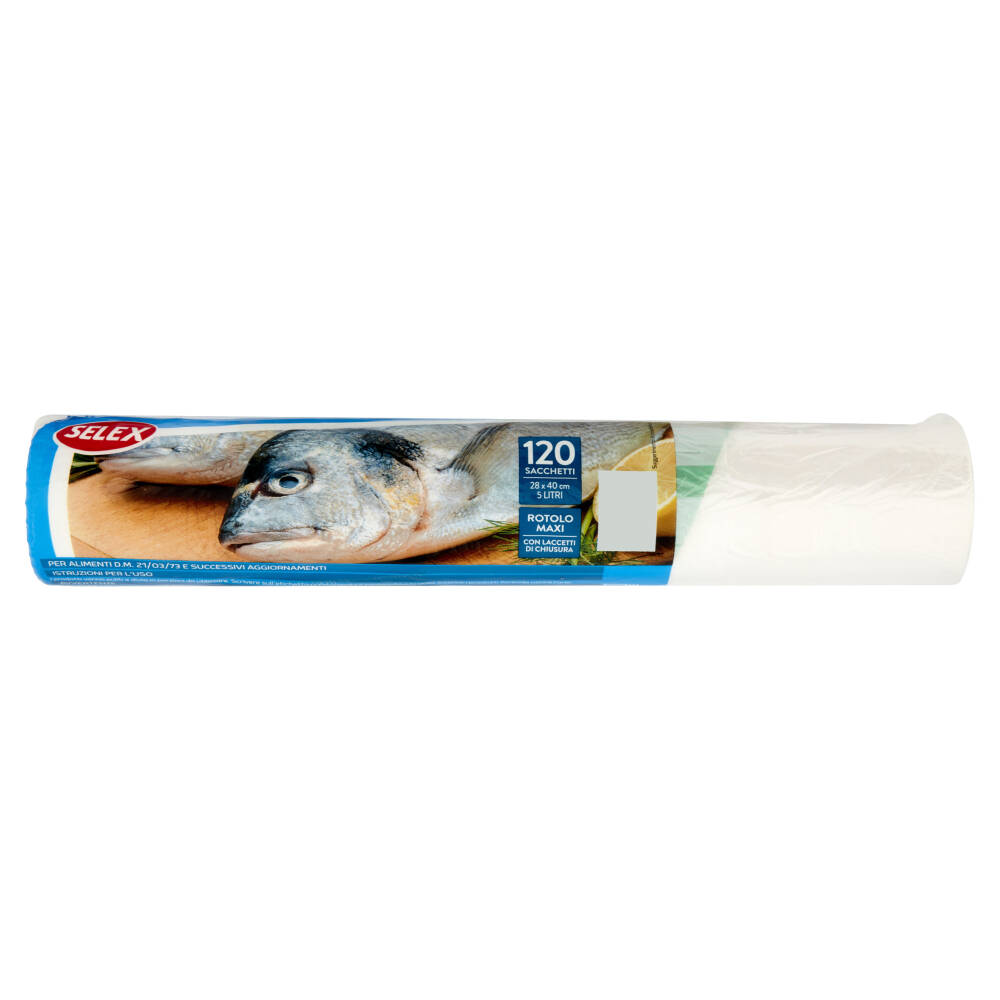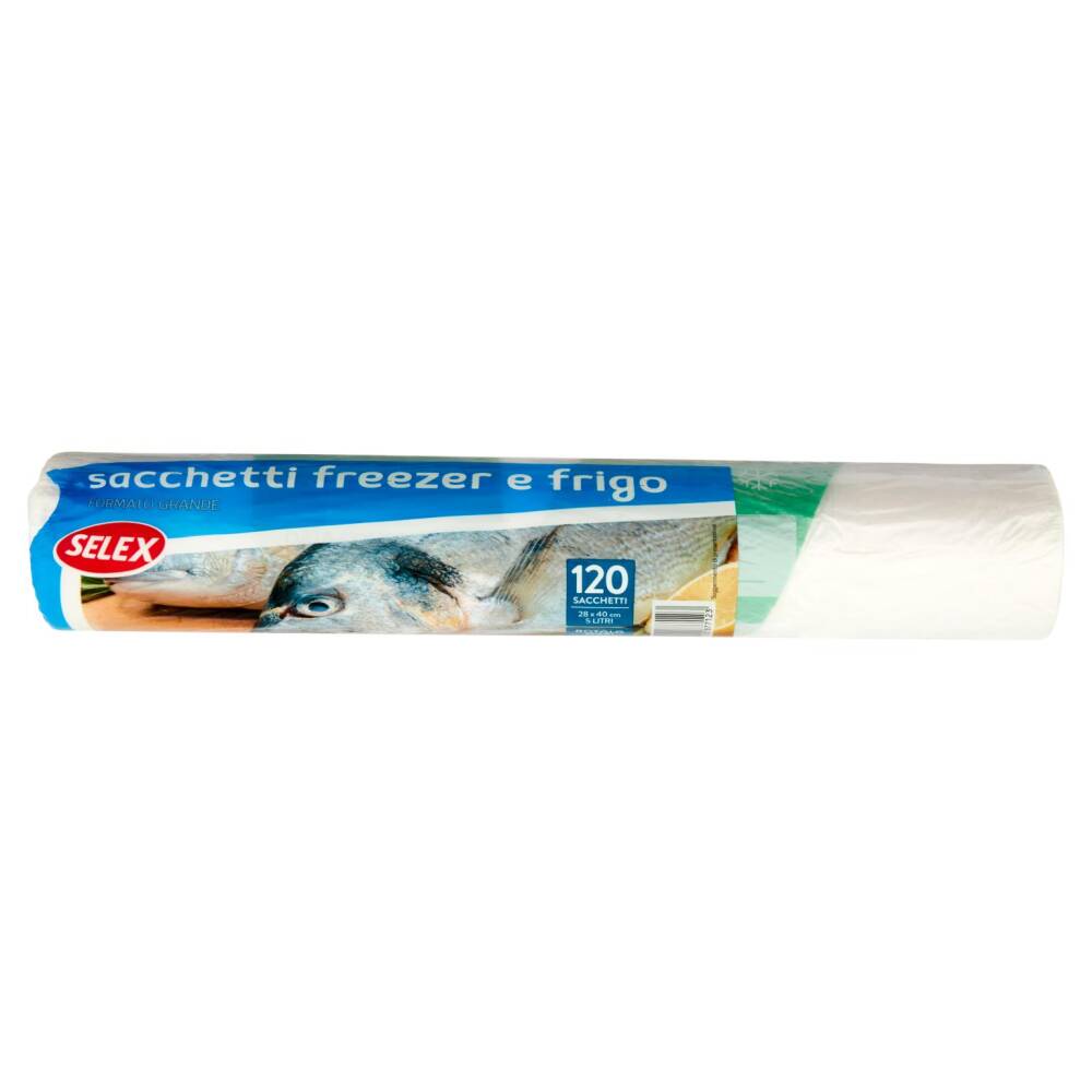 Sacchetti freezer e frigo Formato grande 120 Sacchetti - 28 x 40 cm - 5 Litri Rotolo maxi - Con laccetti di chiusura
