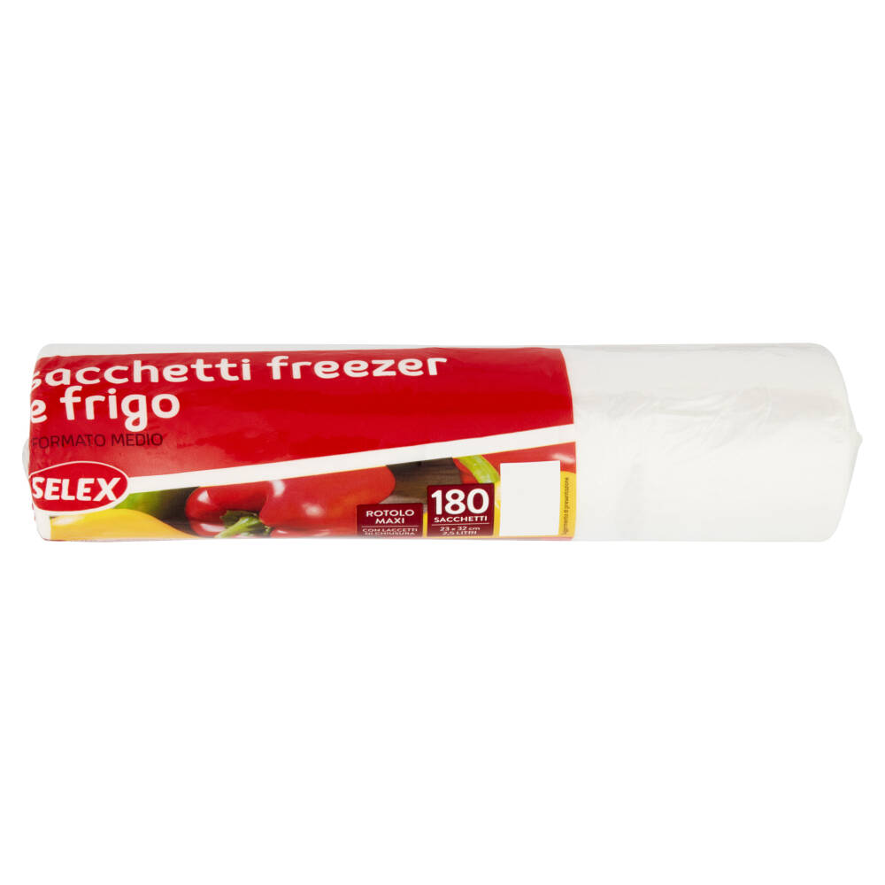 Sacchetti freezer e frigo Formato medio Rotolo maxi - Con laccetti di chiusura 180 Sacchetti - 23 x 32 cm - 2,5 Litri