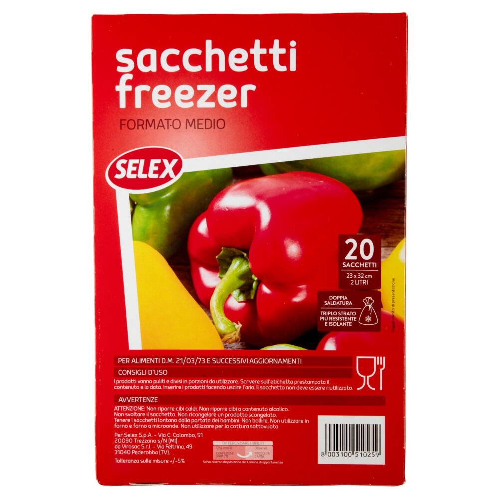 Sacchetti freezer Formato medio 20 Sacchetti - 23 x 32 cm - 2 Litri Doppia saldatura - Triplo strato più resistente e isolante