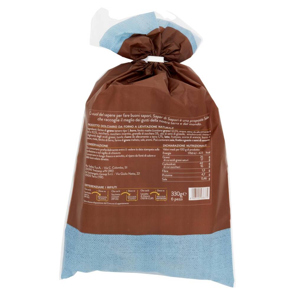 Farina di grano tenero tipo 1 Burro Lievito madre (contiene grano) 12,5% Acqua Uova da allevamento a terra 10,5% Zucchero Zucchero invertito Granella di zucchero 5% Olio di semi di girasole Emulsionanti: mono e -digliceridi degli acidi grassi Tuorlo d'uovo da allevamento a terra 1,7% Latte Fruttosio Scorza di arancia Burro di cacao Miele Lievito di birra Farina di grano maltato Sale Aromi Può contenere soia, frutta a guscio e semi di sesamo