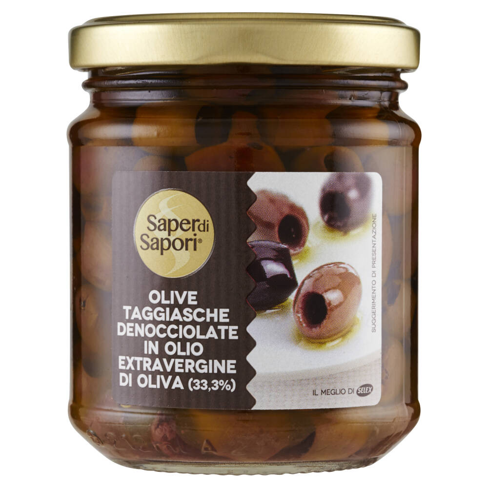 Olive Taggiasche denocciolate in olio extravergine di oliva (33.3%)