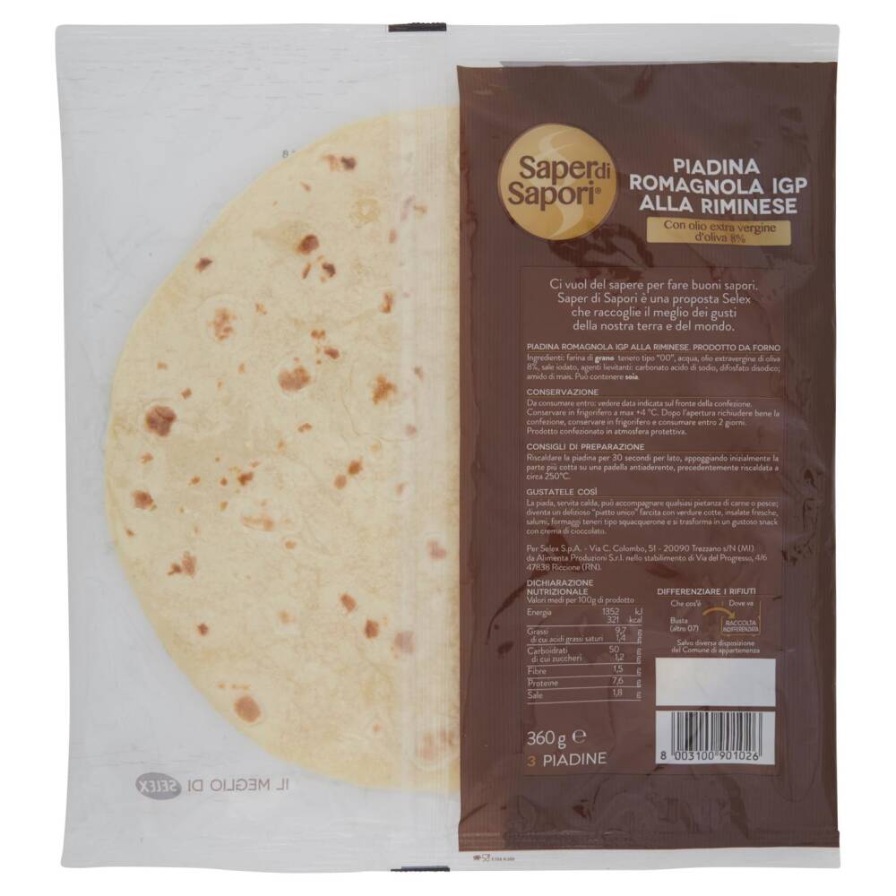 Con olio extra vergine d'oliva 8% Indicazione Geografica Protetta 3 Piadine Il meglio di Selex