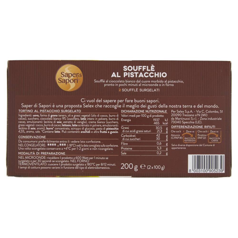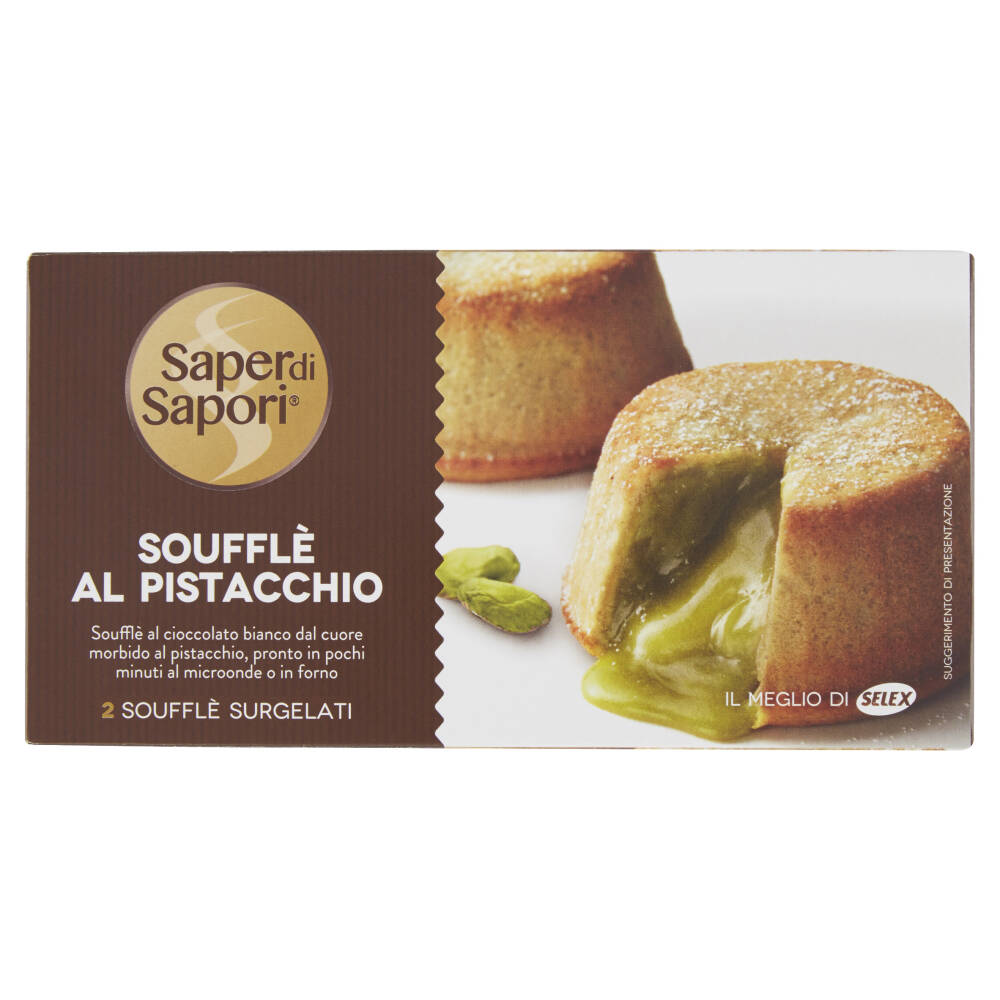 Soufflè al cioccolato bianco dal cuore morbido al pistacchio, pronto in pochi minuti al microonde o in forno 2 Soufflè surgelati Il meglio di Selex