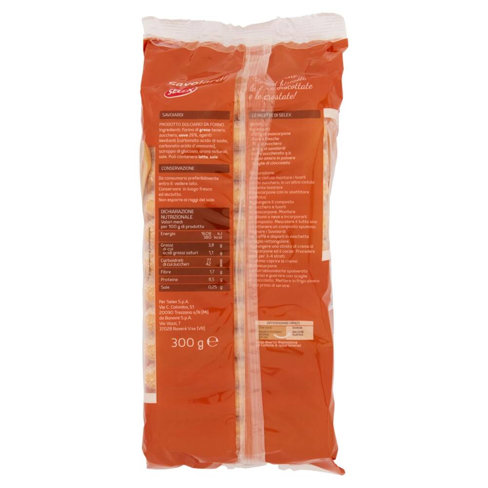 Farina di grano tenero Zucchero Uova 26% Agenti lievitanti (carbonato acido di sodio, carbonato acido d'ammonio) Sciroppo di glucosio Aromi naturali Sale Può contenere latte, soia