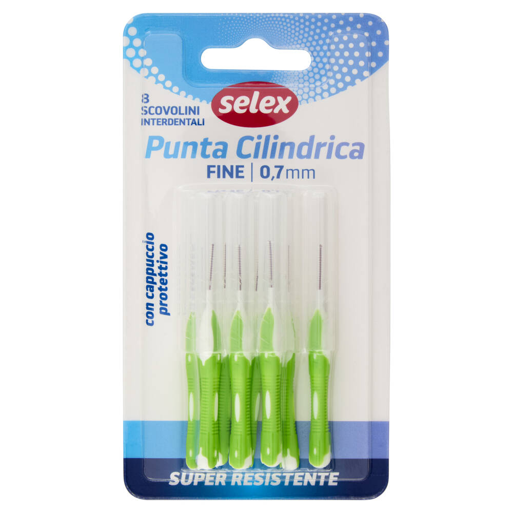 8 Scovolini interdentali Punta Cilindrica Fine | 0,7 mm Con cappuccio protettivo Super resistente