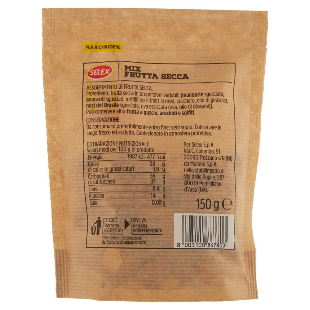 Frutta secca in proporzioni variabili [mandorle sgusciate, anacardi sgusciati, mirtilli rossi (mirtilli rossi, zucchero, olio di girasole), noci del Brasile sgusciate, uva essiccata (uva, olio di girasole)] Può contenere altra frutta a guscio, arachidi e solfiti