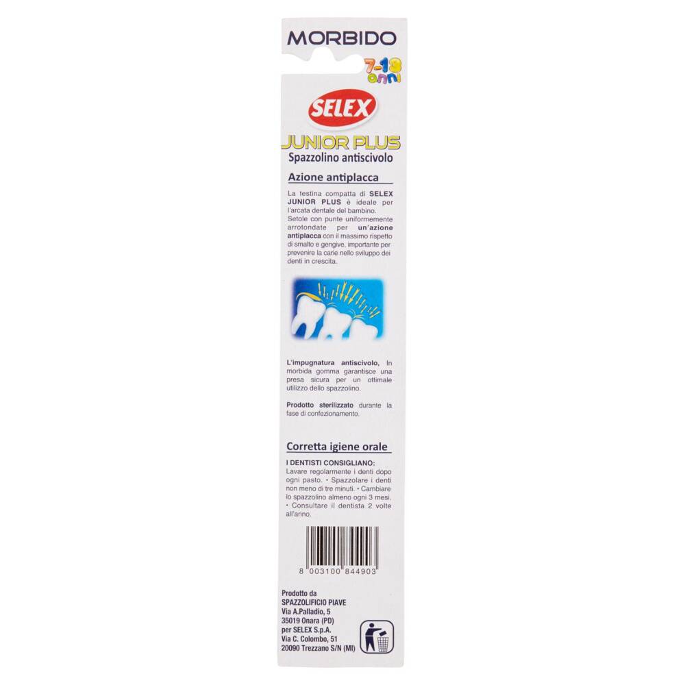 Setole con punte uniformemente arrotondate per un'azione antiplacca con il massimo rispetto di smalto e gengive, importante per prevenire la carie nello sviluppo dei denti in crescita.