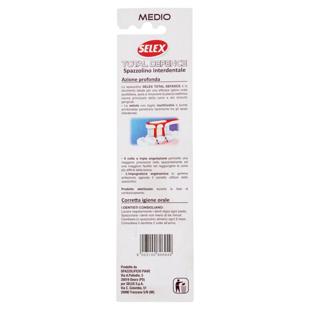 Lo spazzolino Selex Total Defence è lo strumento ideale per una efficace igiene orale quotidiana, aiuta a rimuovere la placca batterica causa principale della carie e dei disturbi gengivali.
