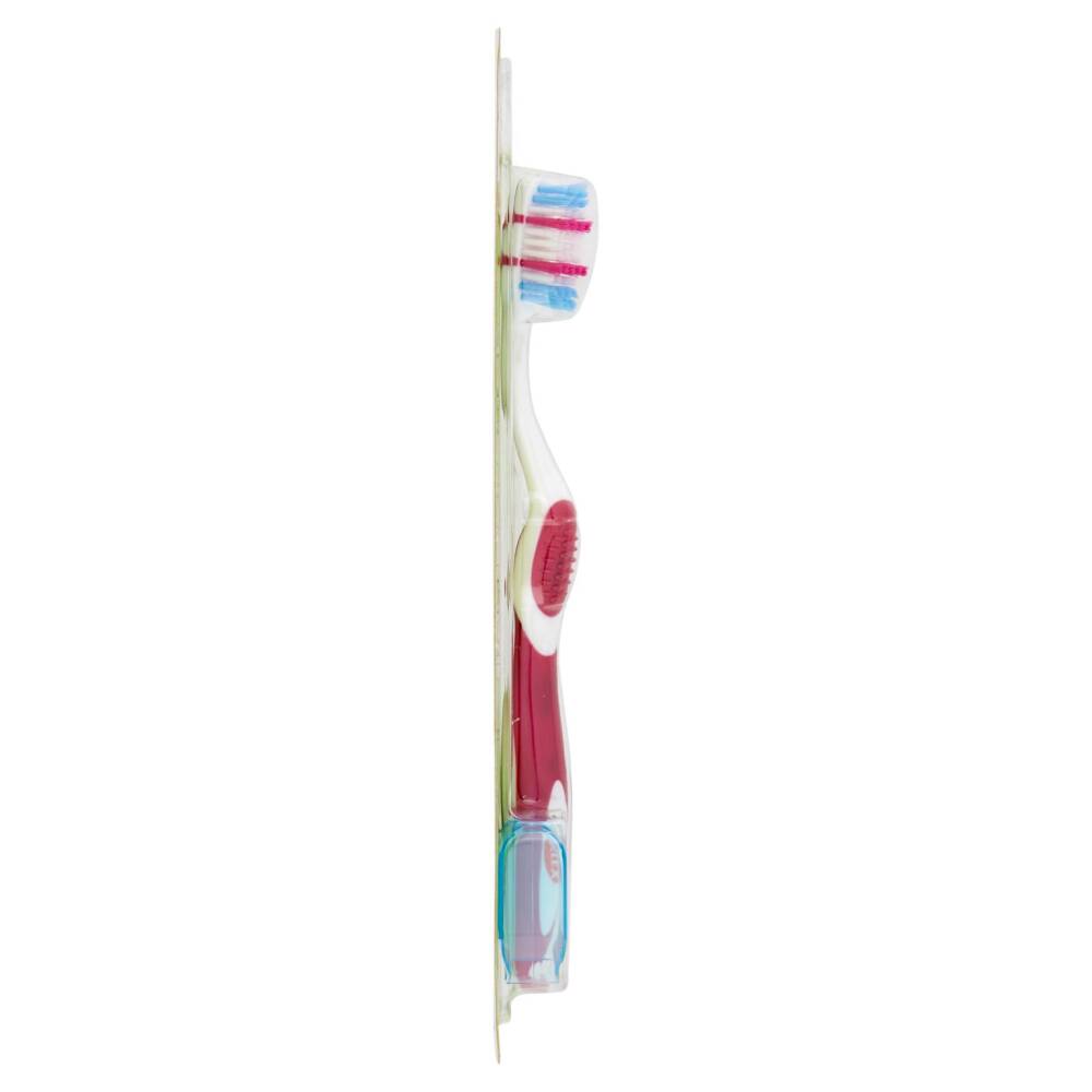 - Le setole con taglio multilivello e punte arrotondate penetrano facilmente tra gli spazi interdentali.