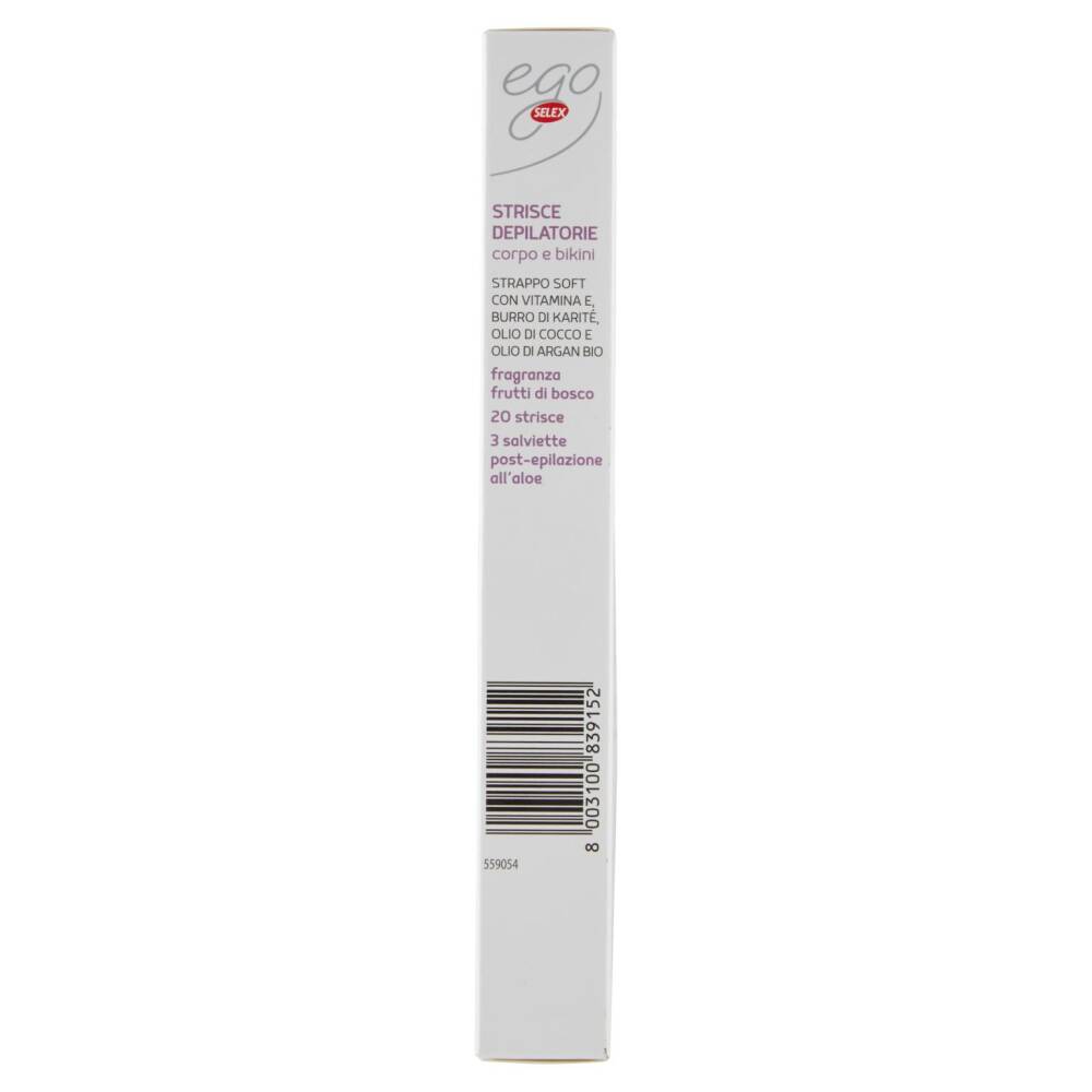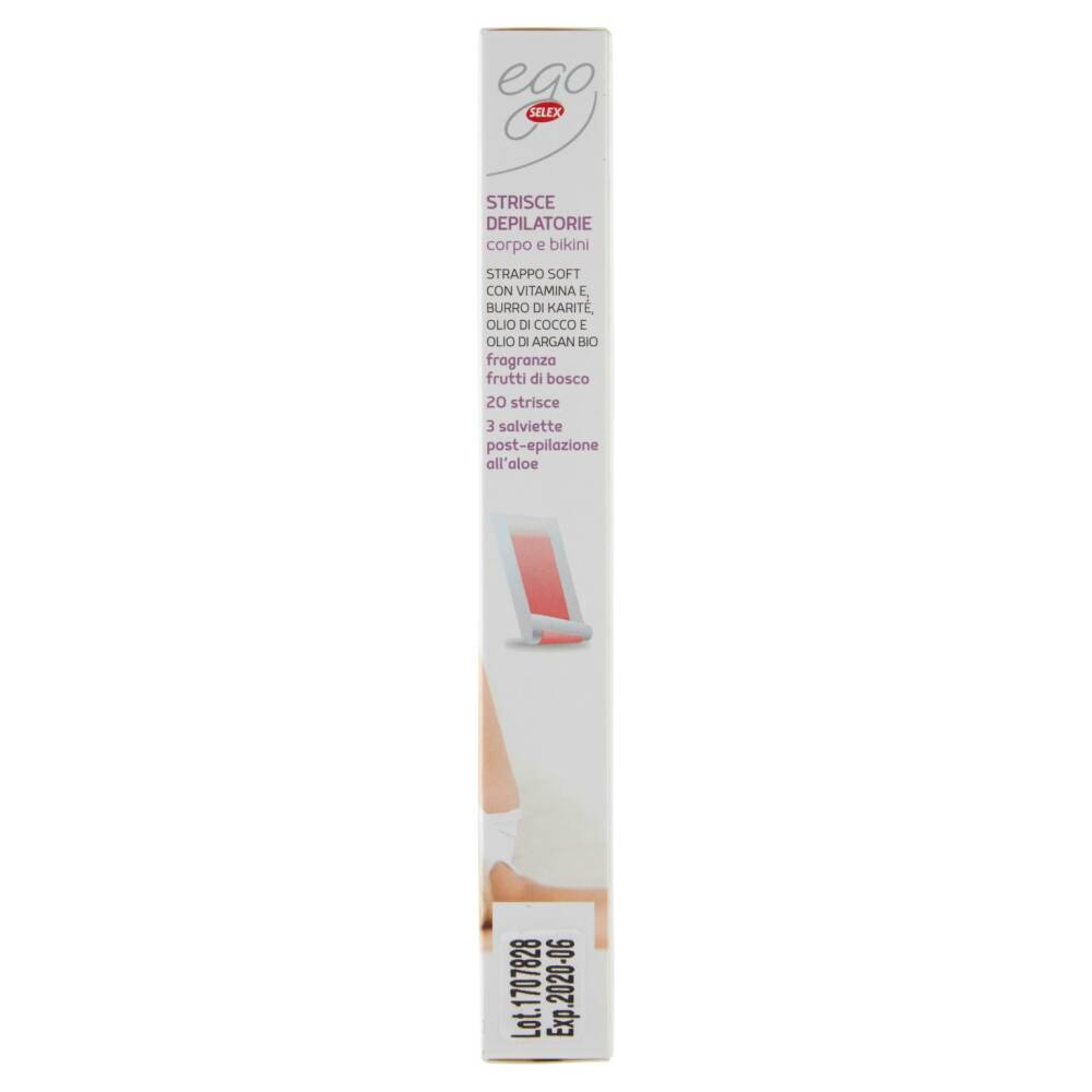 Strappo soft con vitamina E, burro di karitè, olio di cocco e olio di argan bio Fragranza frutti di bosco 20 Strisce 3 Salviette post epilazione all'aloe Dermatologicamente testate