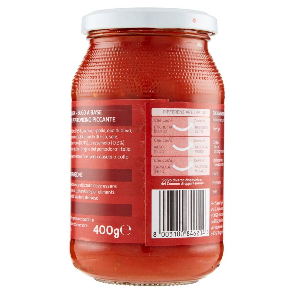 Polpa di pomodoro (76,5%) Acqua Cipolla Olio di oliva Doppio concentrato di pomodoro (2,8%) Amido di riso Sale Zucchero Aglio (0,7%) Peperoncino (0,31%) Prezzemolo (0,2%) Sedano Erba cipollina Senza glutine