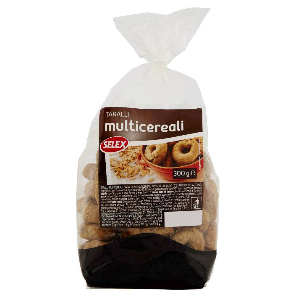 Taralli ai multicereali con olio di oliva 17%. Prodotto da forno